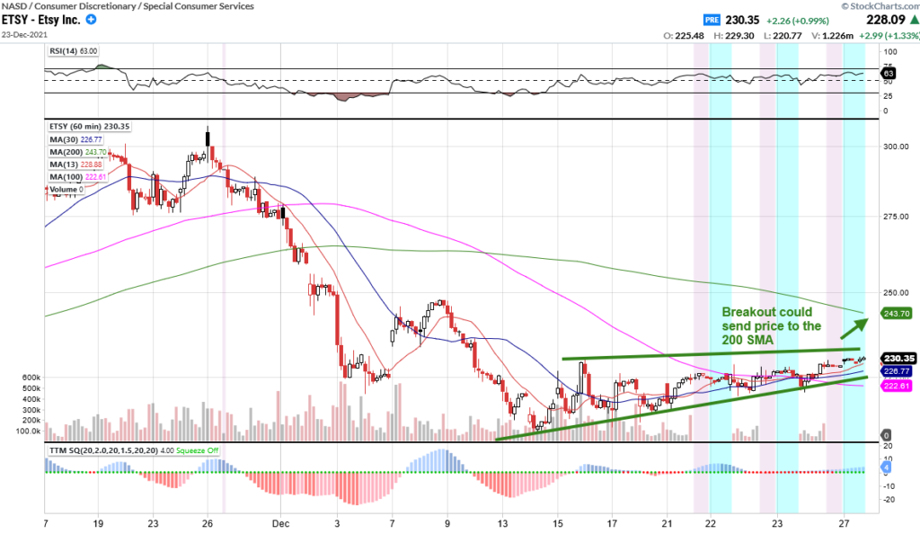 At this point, I’m thinking the bulls are looking for the slightest momentum, and I think they might get it now as ETSY is holding above the 13/30/100 hourly moving averages.
