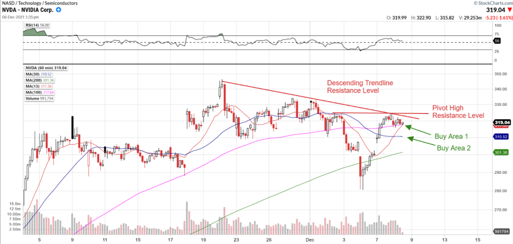 NVIDIA Corp (NVDA) is trading under two interesting resistance levels, with the Descending Trendline Resistance Level and the Prior High Resistance Level converging.